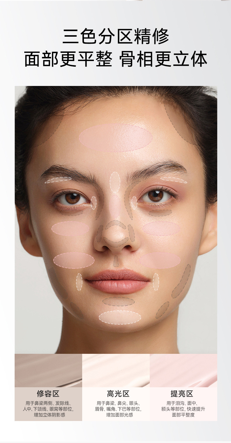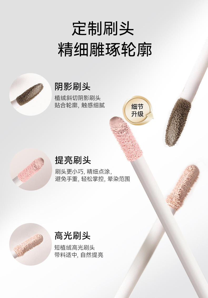 色の分類 #ファイバーカービングセメントシャドウ【新配合】,#フローレス ハイライト [新処方],光と影のCP【新式】,両頭コントゥアリングスティック,ピンク&ホワイト ブライトニング リキッド [新色],ピンクと白のブライトニング + ハイライトスティック + セメントスティック「3色のパーティションと骨相の微細な修正」