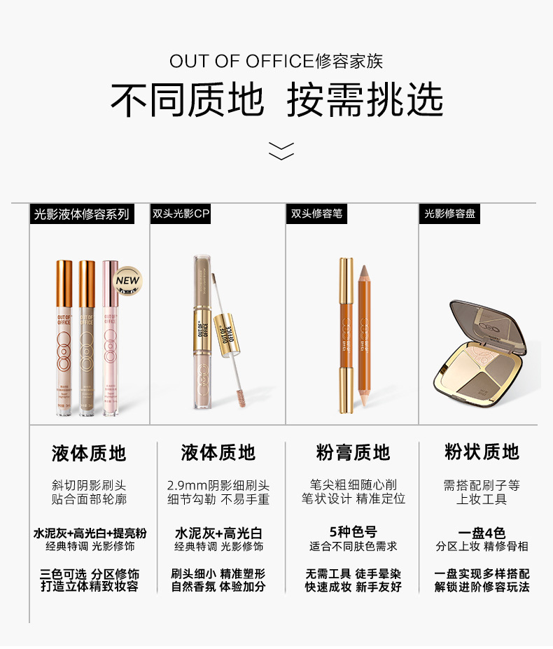 哦野OUT OF OFFICE修容盘ooo修容高光一体盘四色鼻侧阴影立体修颜