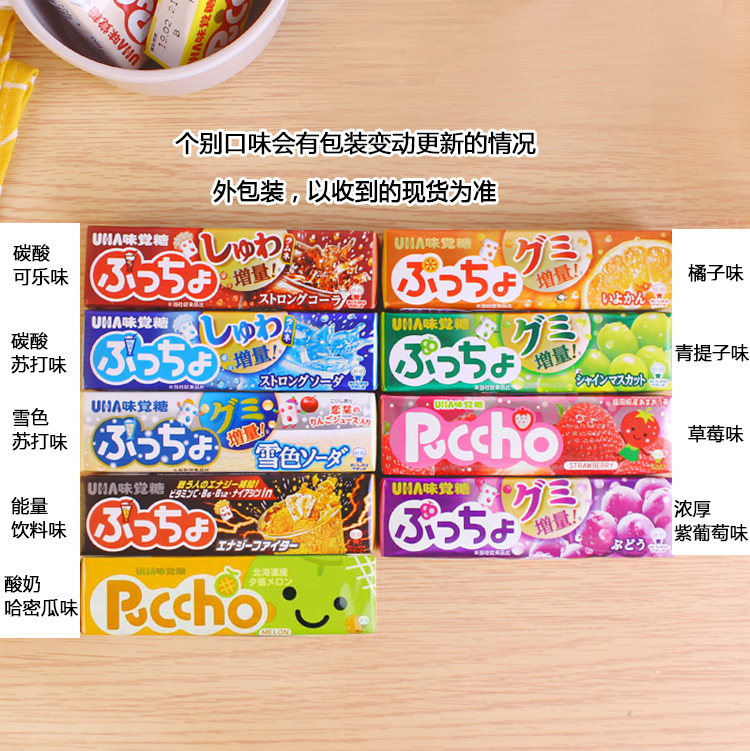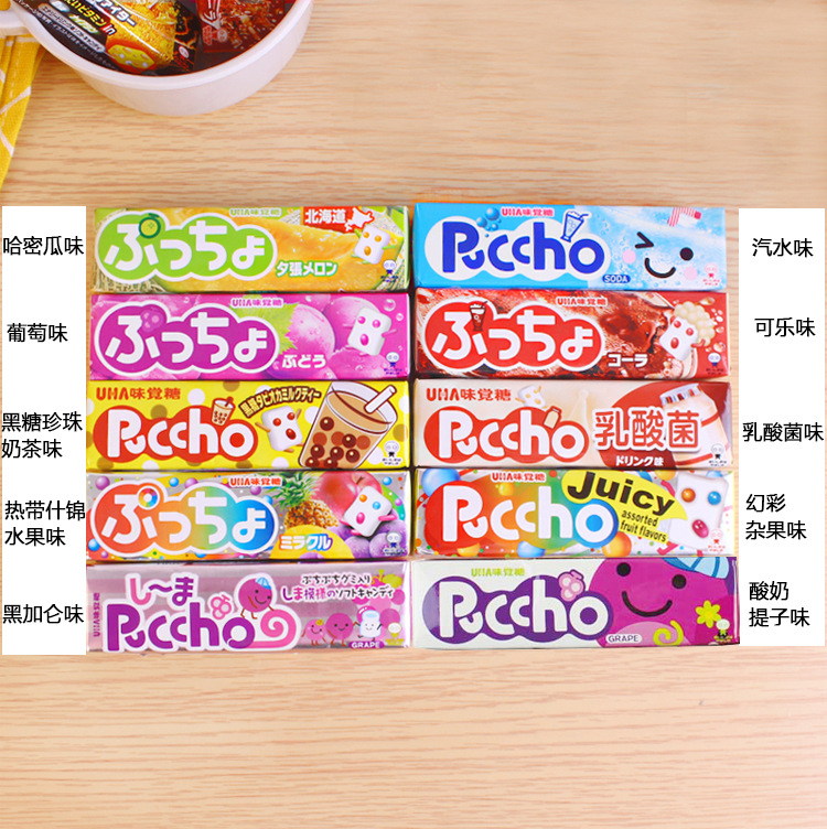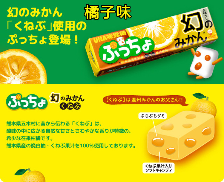 日本UHA家获得世界知名“糖中糖”系列,每一季都有新口味出的!日本同步!广告做的也是相当的可爱,UHA家非常热卖的puchiyo系列,悠哈迷们的不要错过啦!不像一般的糖那么甜,它的味道很特别,吃过以后唇齿留香。
