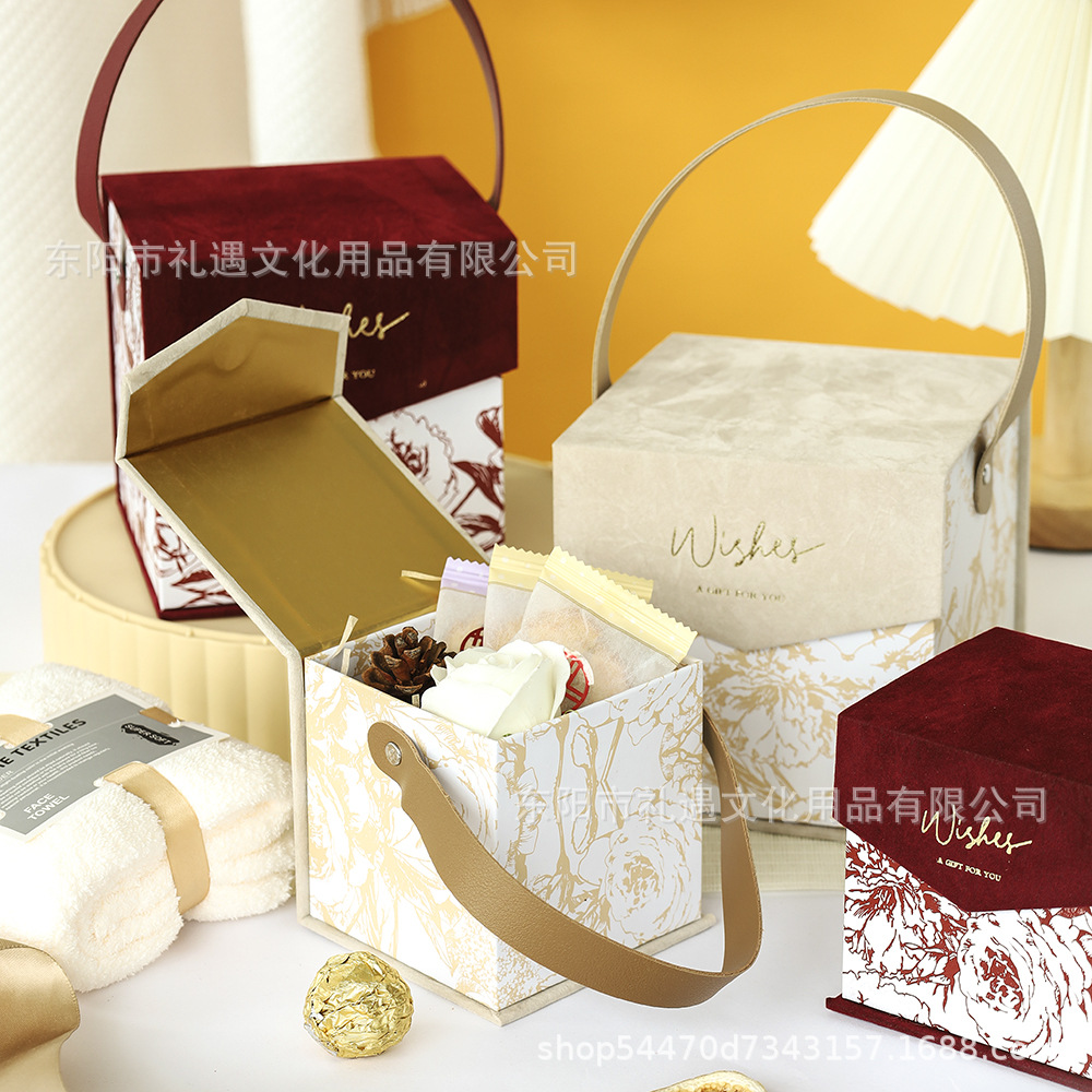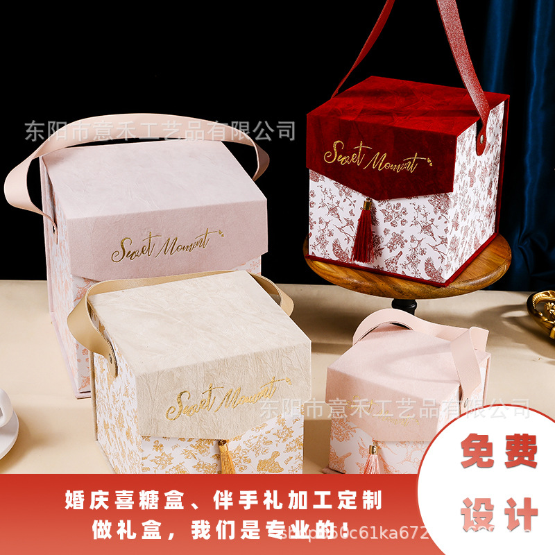 高筒喜糖盒子定制 欧式手提盒结婚婚礼 绒布伴手礼品盒子回礼创意