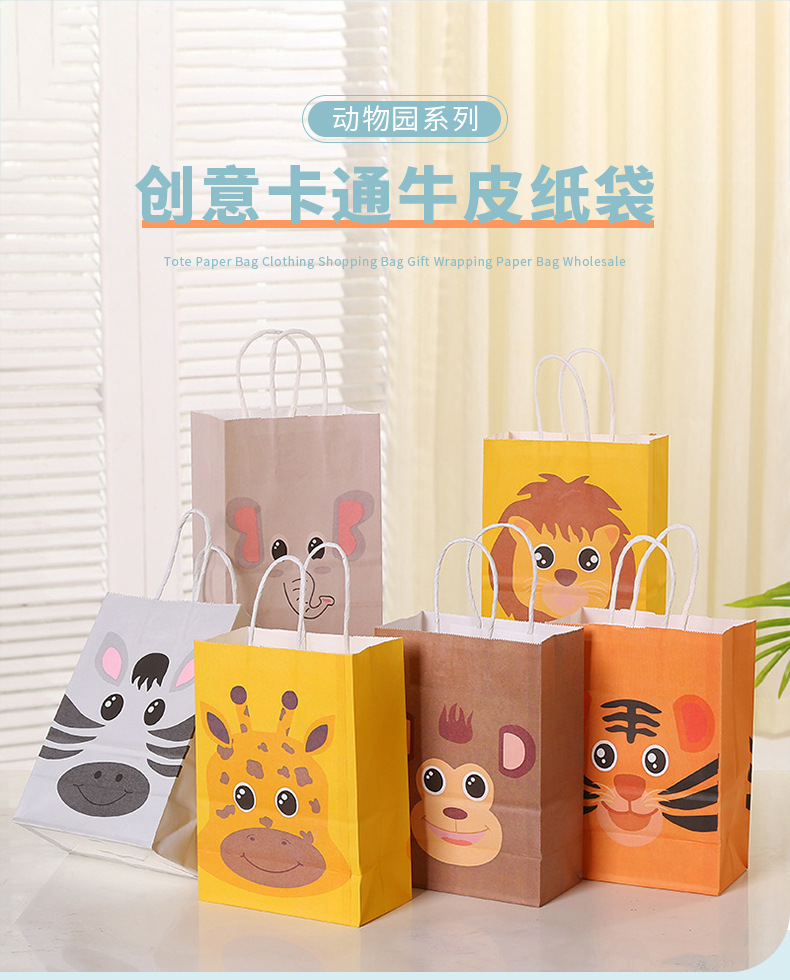 新しいプリントクラフト紙手提げ袋子供の日誕生日パーティープレゼント袋アニメプリントプレゼント袋卸売り