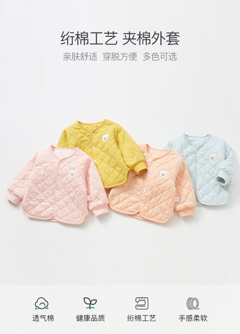 ベビーコート秋冬の薄い綿は綿の赤ちゃんの綿服を挟みます。