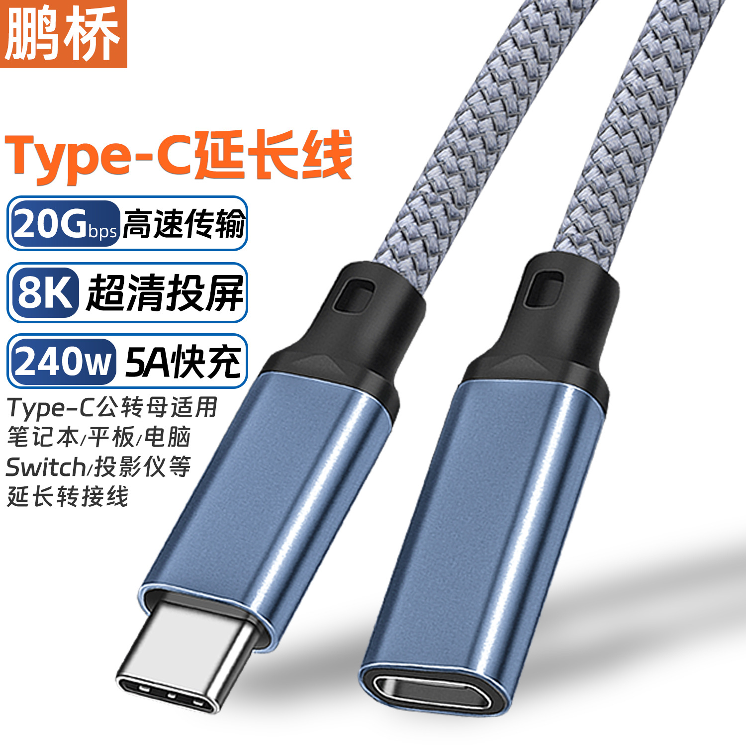 Type-C延長ケーブル オス-メス 8Kスクリーン投影ケーブル 20G高速ケーブル 240Wコンピュータドッキングステーション ハードディスクアダプタケーブル