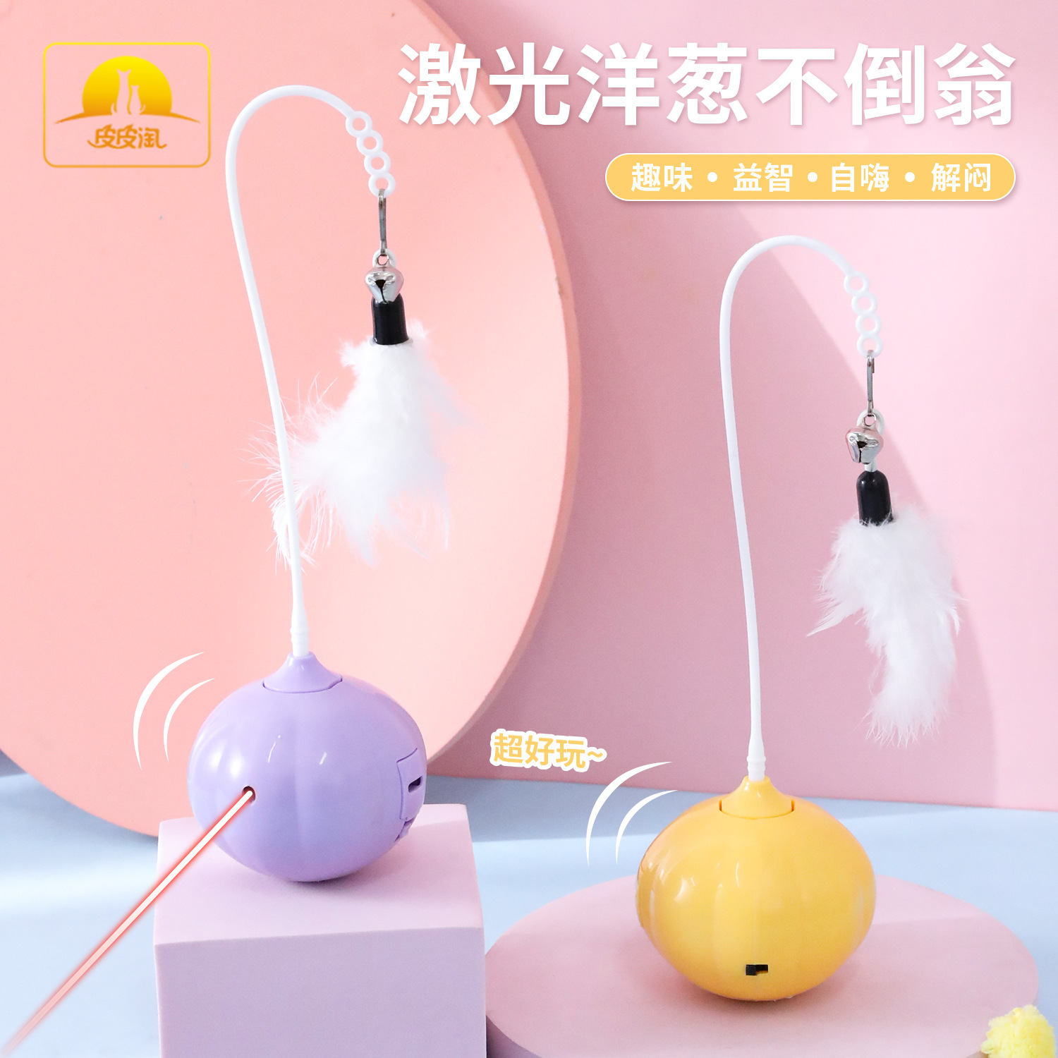 4、两个羽毛逗猫棒通过旋转方式,安装在产品顶部两边。