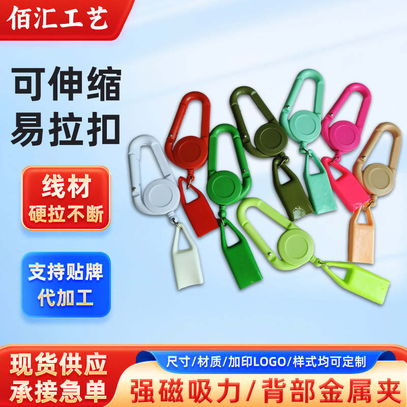 新款便携户外登山伸缩易拉扣彩色可伸缩工牌拉线器金属易拉得批发
