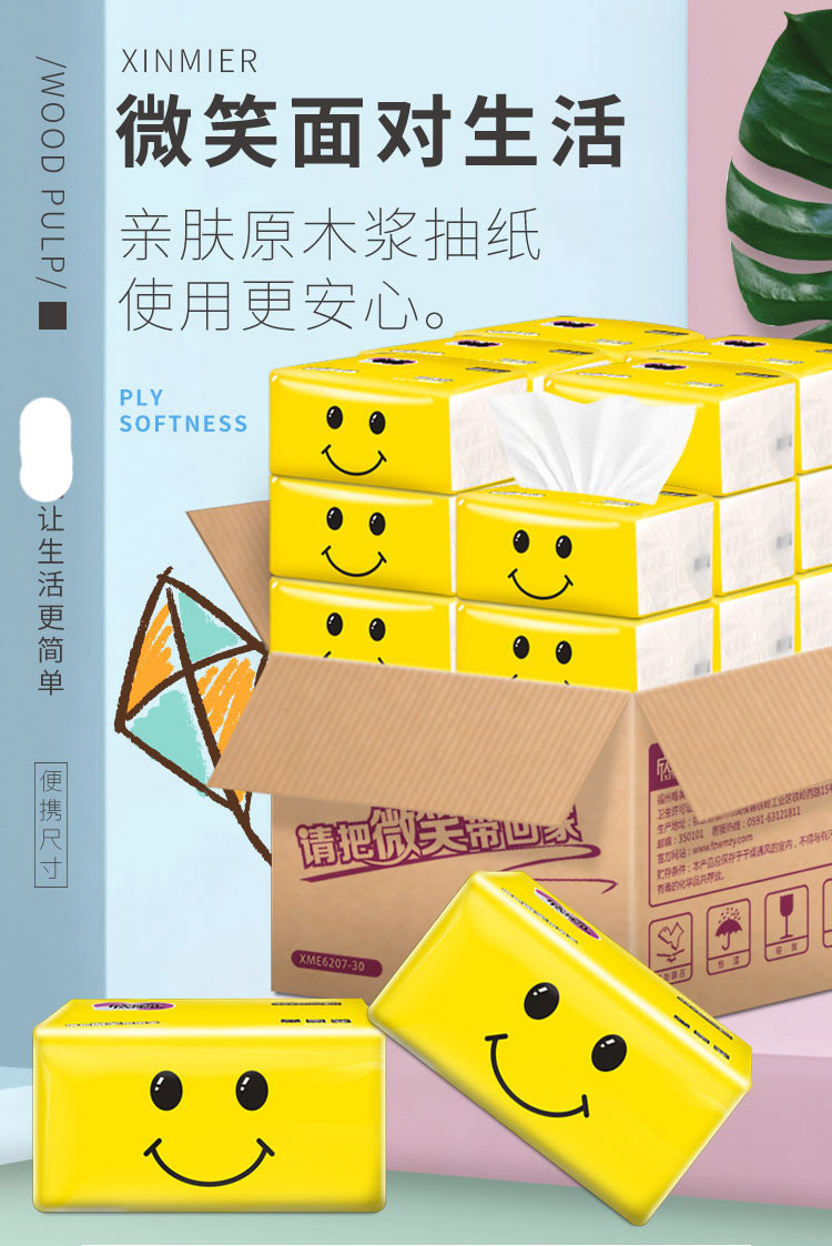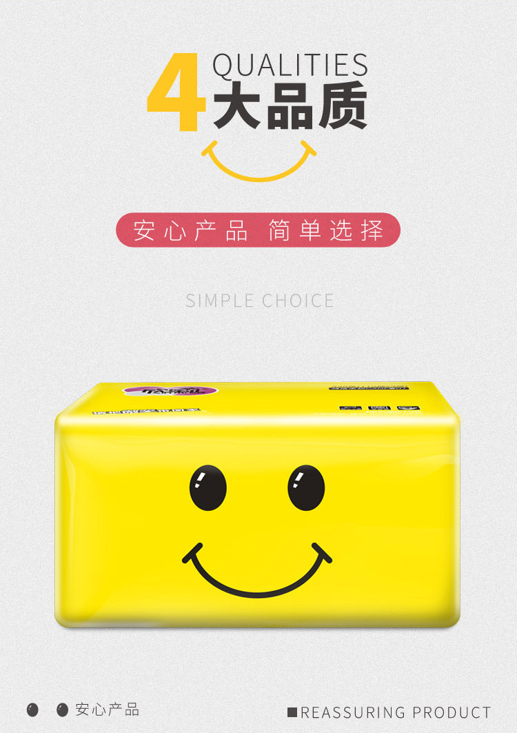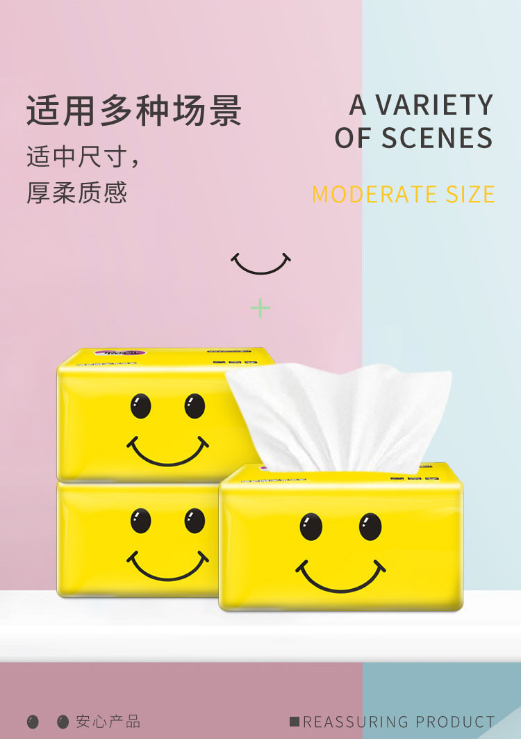 スマイリーフェイスティッシュペーパー 4 層 300 枚ホームレストランキッチンナプキン家庭用トイレットペーパーフェイシャルティッシュボックスペーパータオル