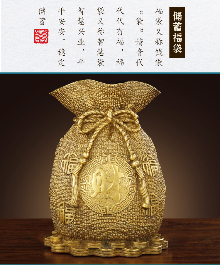 善品黄銅貯金箱福袋置物黄銅聚宝盆黄金袋ホームオフィスギフトメーカー卸売り