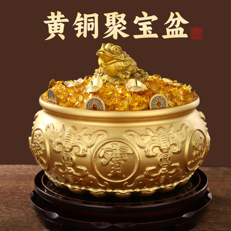聚宝盆摆件聚财金蟾纯黄铜家用存钱罐客厅店铺开业礼品八方来财