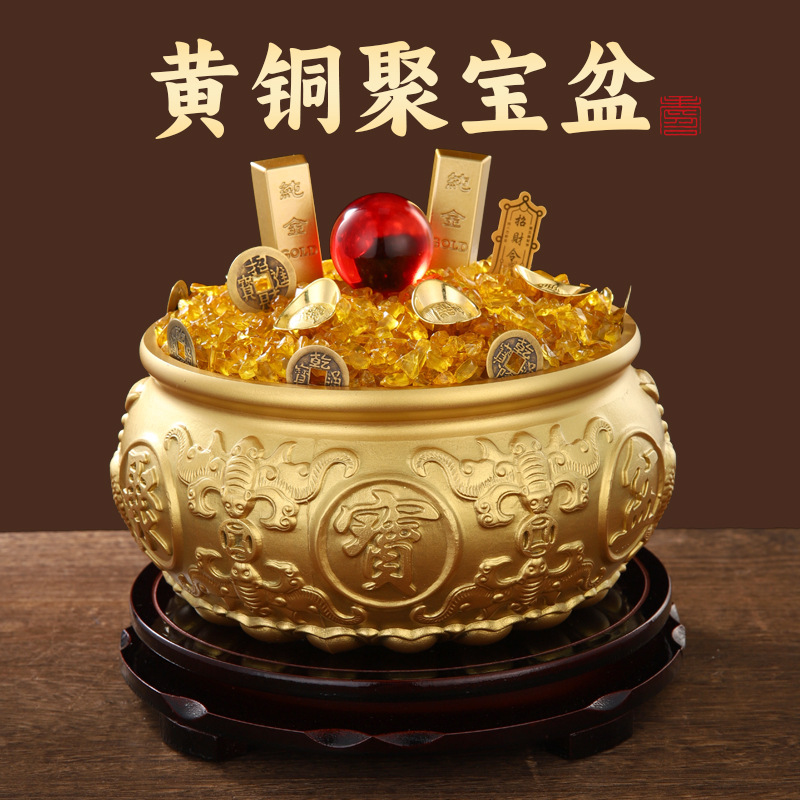 聚宝盆摆件金条套餐纯黄铜家用存钱罐客厅店铺开业礼品八方来财