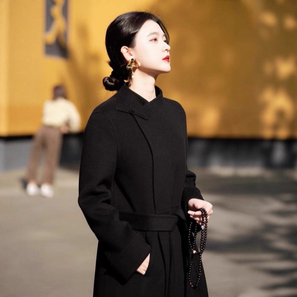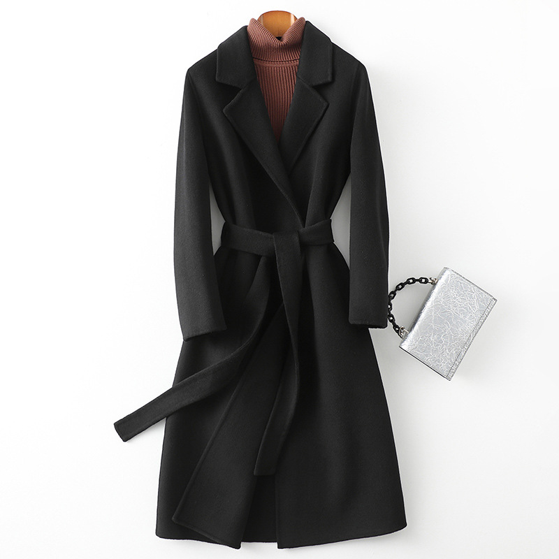 両面カシミヤコート女性のミッドレングス 2025 新しいハイエンド痩身黒ウールコートドロップシッピング