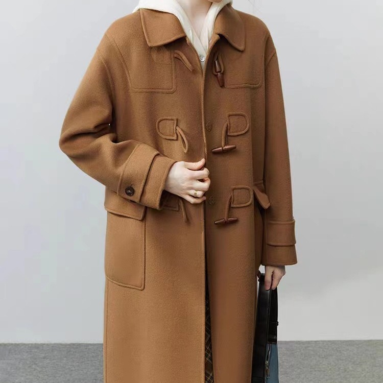 フレンチFS気質通勤カレッジスタイルホーンボタン両面手作り羊毛コート秋冬ロングコート女性用