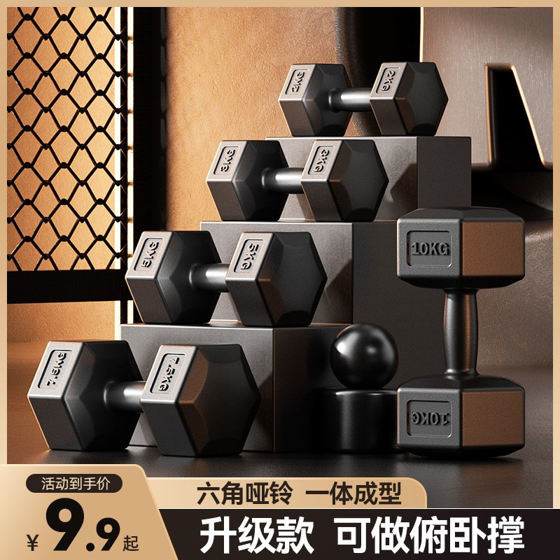 ダンベル男性フィットネス家庭用器材女性ケトルベルトレーニングアーム筋学生寮セット六角ダンベル5kセット