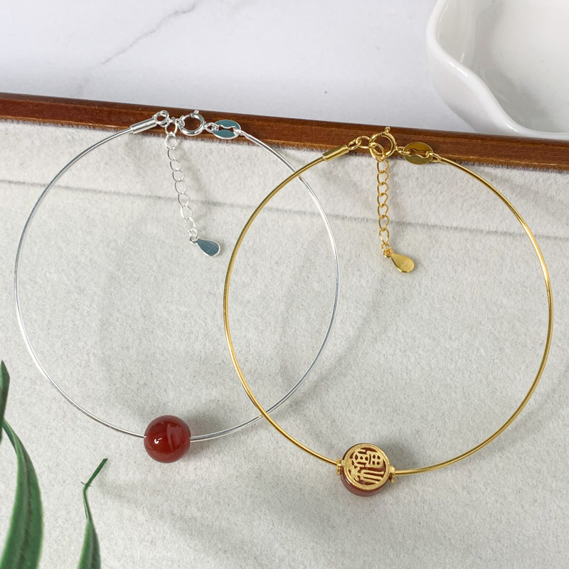 S925銀単珠ねじ留め手輪diy手作りビーズブレスレットねじビーズ円形ブレスレット心輪ins