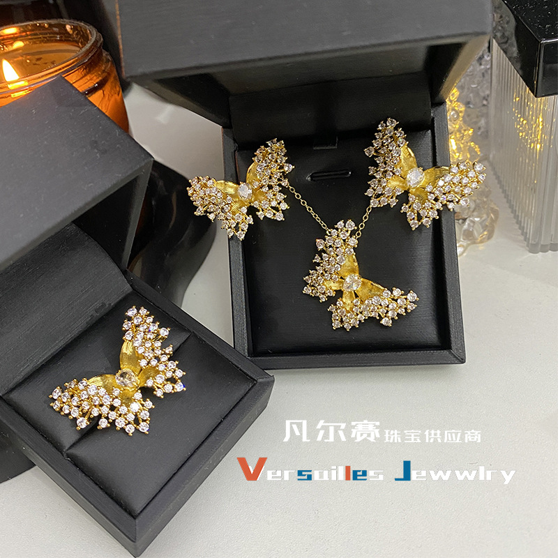 Versa新款鎏金蝴蝶满天星锆石项坠 意大利拉丝鸽子蛋宝石戒指耳钉