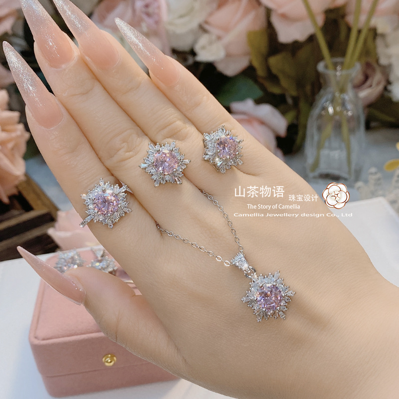 Camelliaきらきらと輝くパパラチャド粉宝セット金メッキ精工小衆雪花ジルコン生放送代発