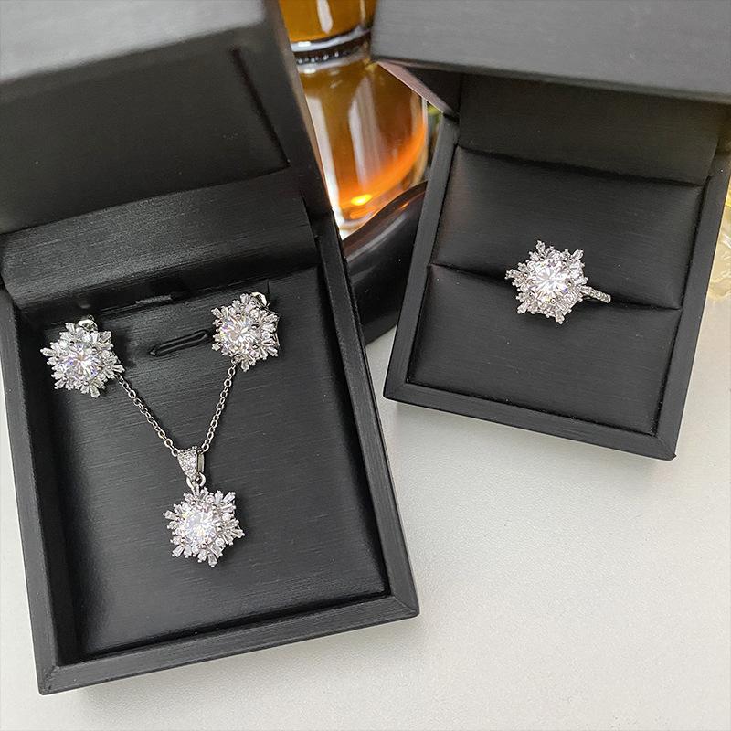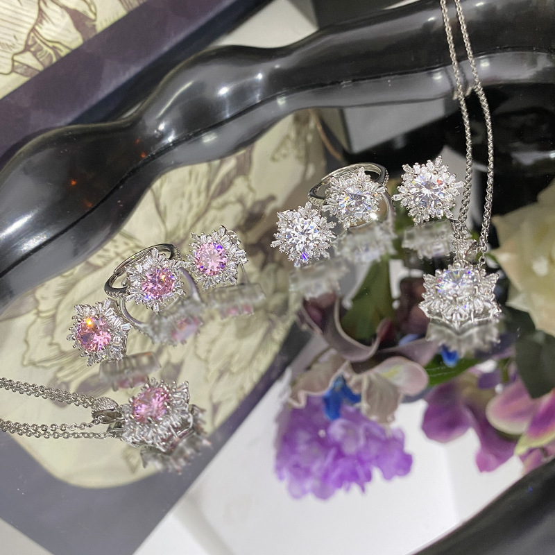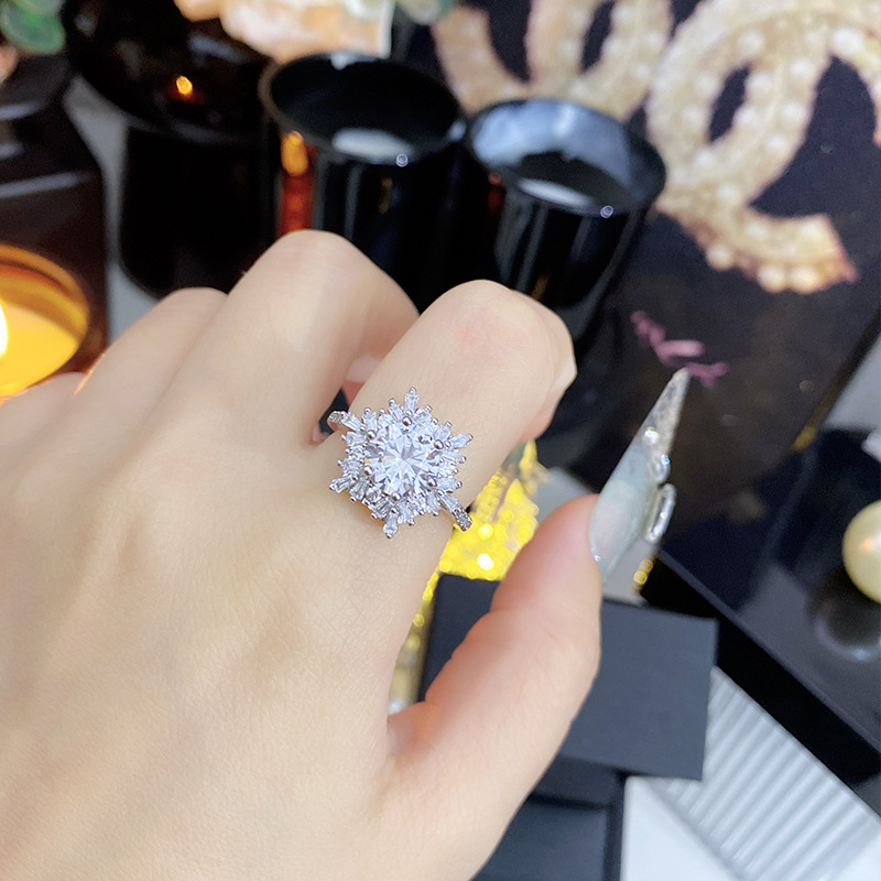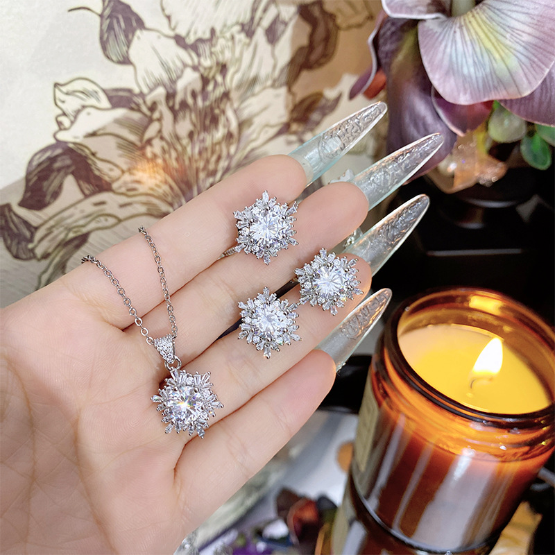 Versa小衆軽豪華氷晶花指輪女性メッキ18kプラチナ透かし彫りセイコー雪花イヤリングジルコニアセット