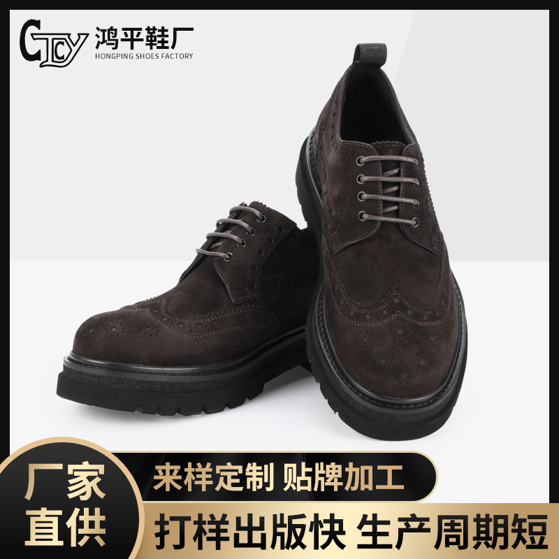 男性カジュアル靴黒色本革楽福靴卸売りバンド彫刻靴面牛革丸頭運動低ヒール靴