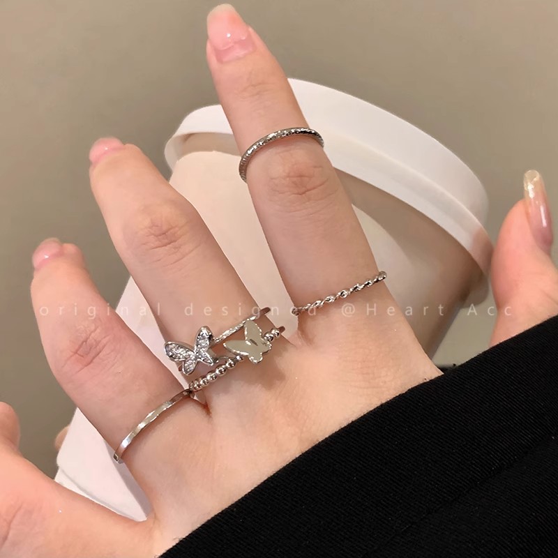 Yuanshuoの新しいサイズの蝶の4つのセットの指輪insの冷たい風の指環の女性の大衆の設計のクールな潮は配合します。