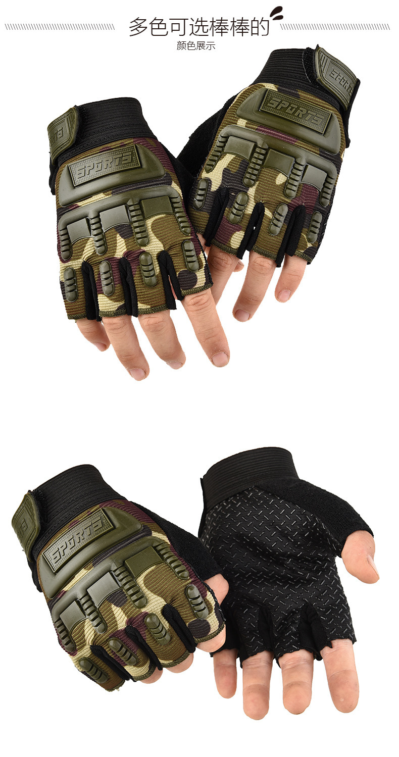 運動騎乗手袋男性特殊兵迷彩戦術訓練男性耐摩耗滑り止め屋外登山半指通気
