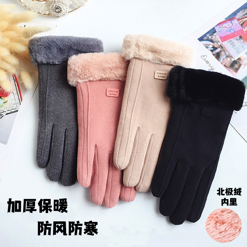 新型女性モデル秋冬保温タッチパネル毛口徳絨毛手袋防風とベルベットの厚い屋外でのマルチカラー