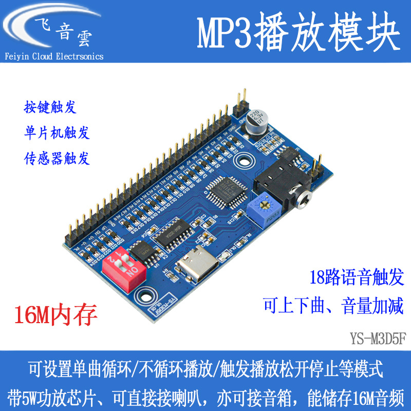 18 チャンネル音声トリガー再生モジュール MP3 キー誘導再生 16M メモリカードフリーマイクロコントローラー M3D5F