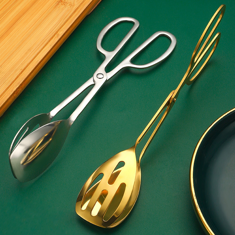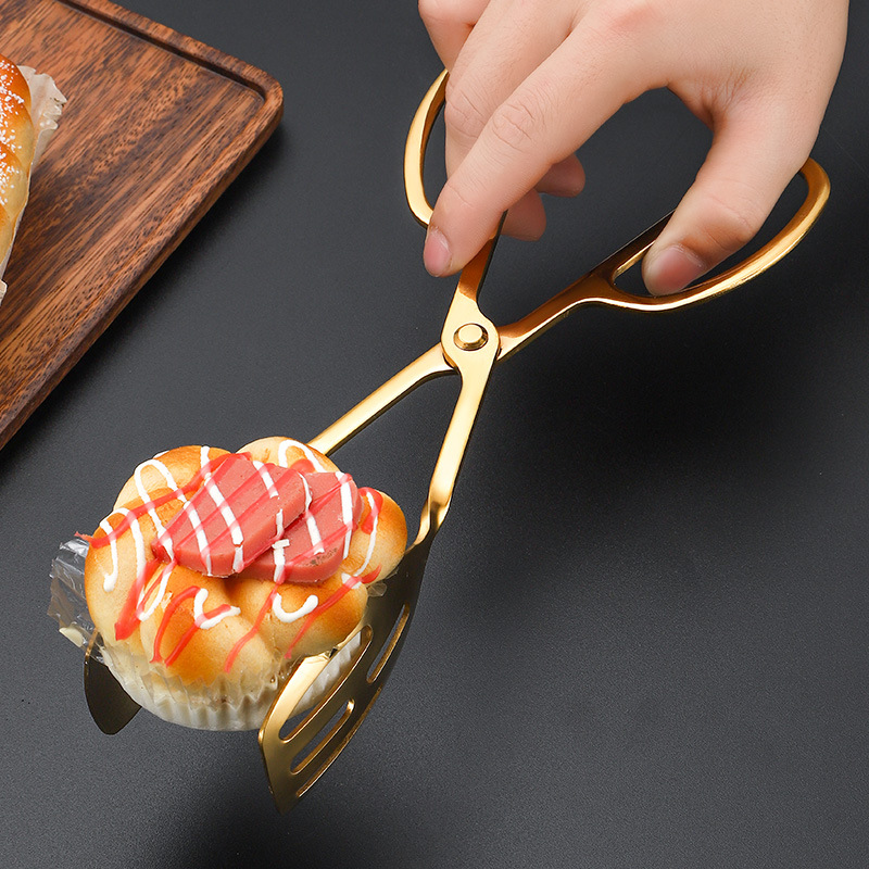 金色のステンレス食品クリップはさみホテルのセルフサービスクリップケーキクリップパンクリップデザートクリップサラダクリップ
