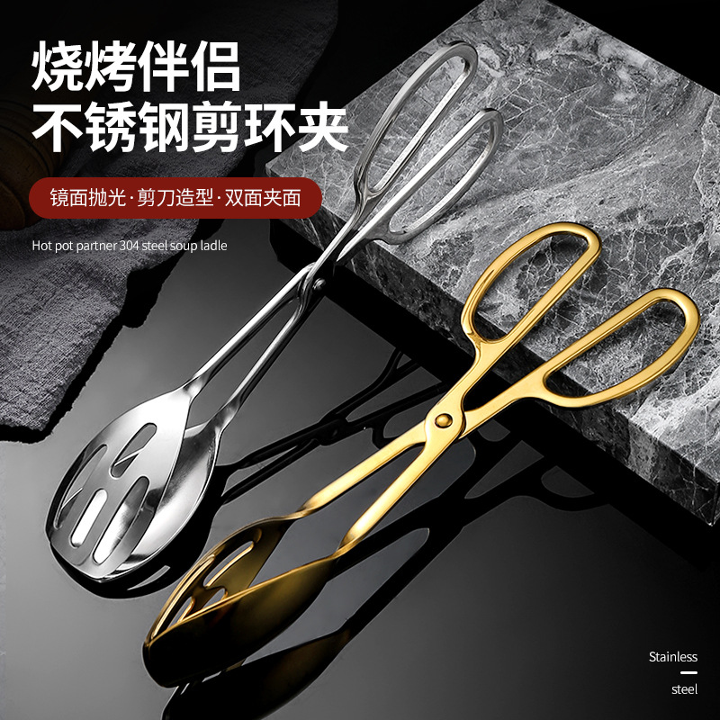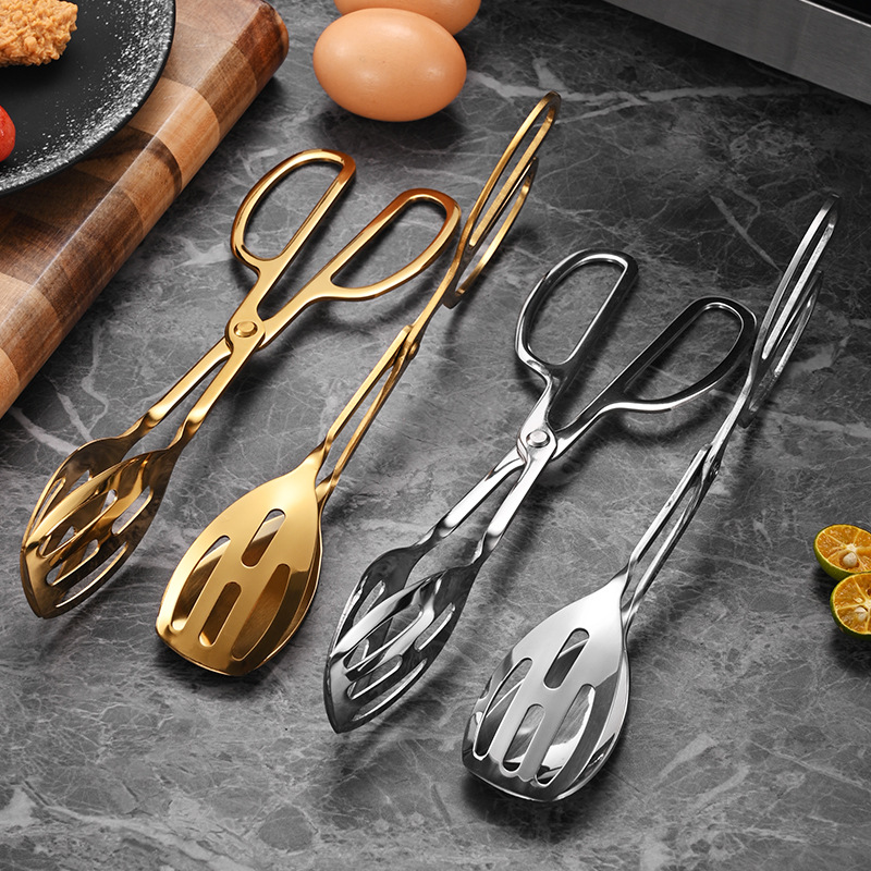 不锈钢剪刀食品夹沙律夹加厚酒店面包夹烧烤夹牛排夹镀钛自助餐夹