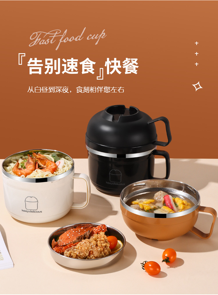 304不锈钢泡面碗带盖保温密封便携学生快餐杯餐具日式便当盒饭盒