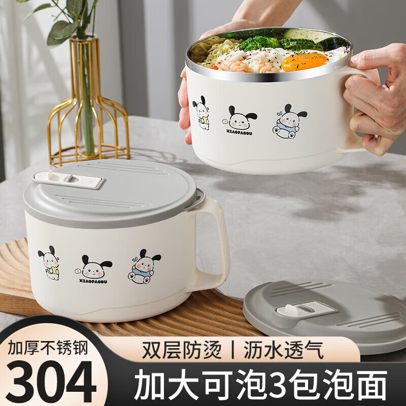 本物の漫画風犬柄ステンレス製インスタ映え日系風大容量水切り付きインスタントラーメン丼 学生向け
