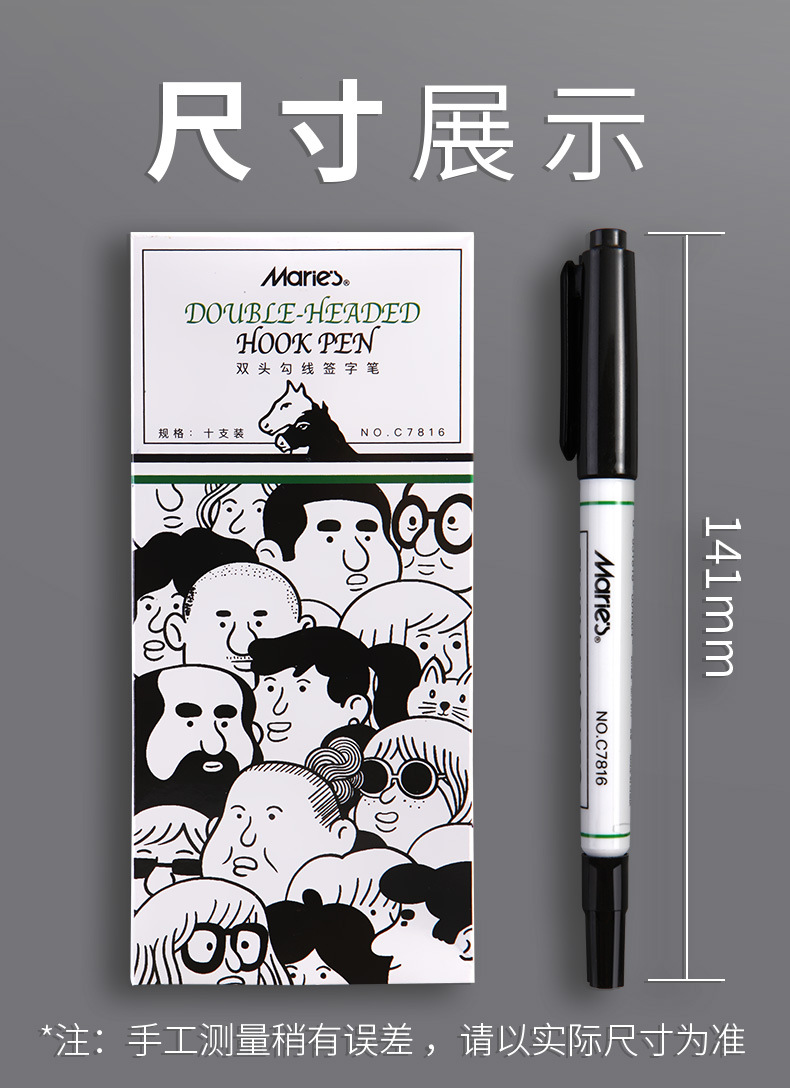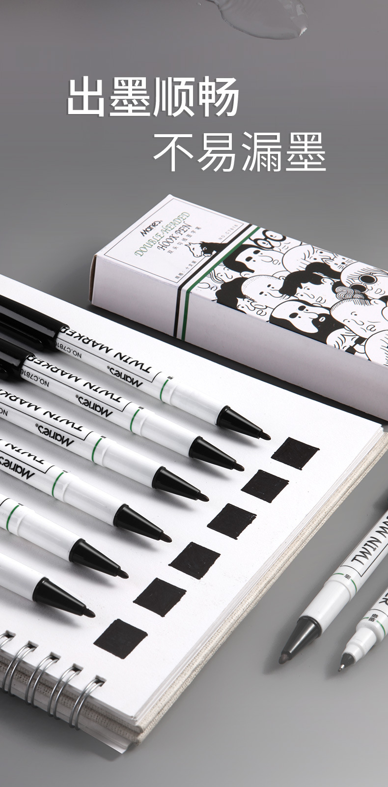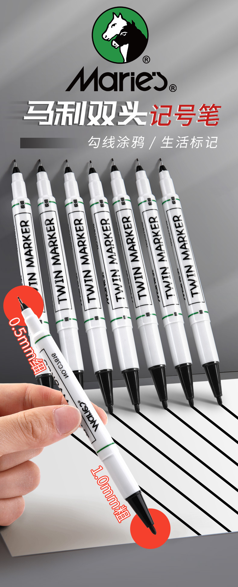 マーリーマーカー線筆美術色落ちしない防水防油二頭速乾細頭マーカー線