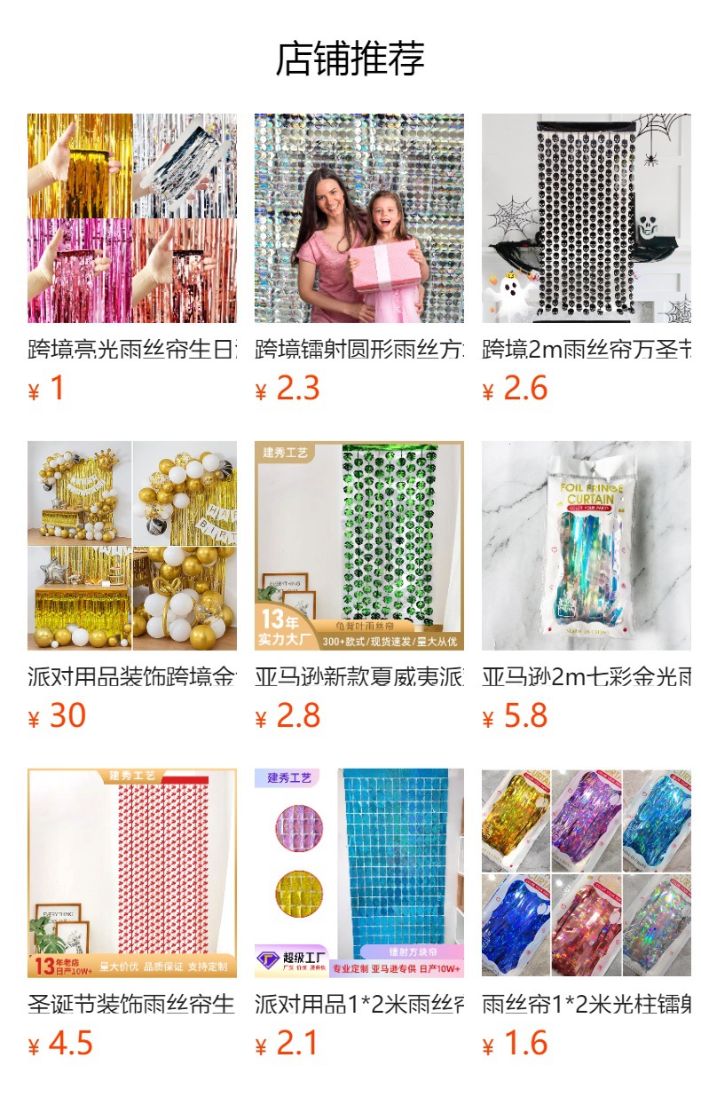 アマゾン2m誕生日パーティー装飾流蘇雨糸カーテン幻彩バレンタインデー三色平光ステッチ雨糸カーテン