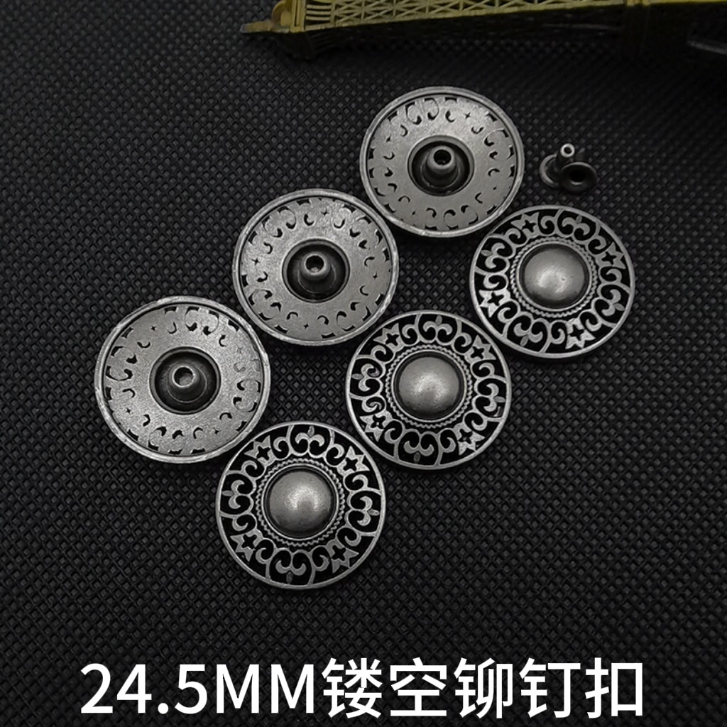 厂家货源批发牛仔裤箱包帽子复古五金扣子25MM镂空圆形古银铆钉扣