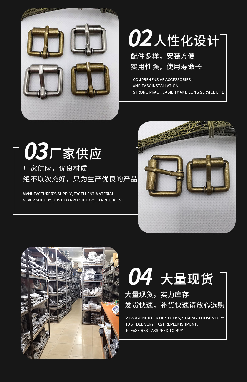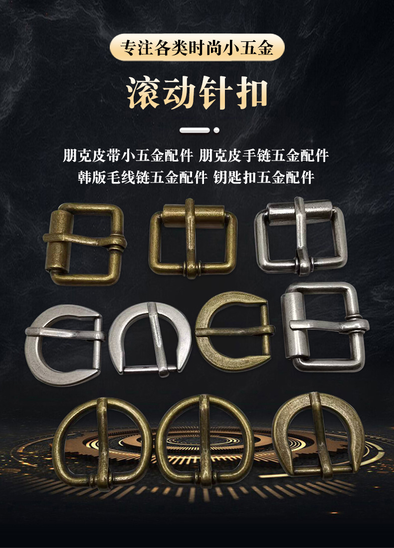 箱包服饰五金针扣 3.8线粗铁质针通扣包带金属滚筒针扣调节扣配件