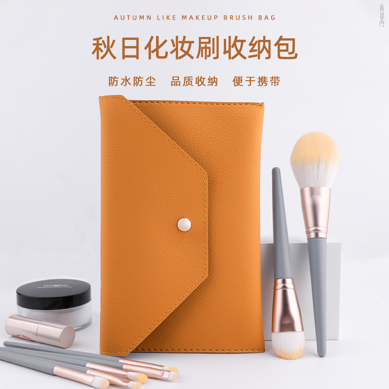 秋日便携式PU皮化妆刷包随身防尘大容量简约彩妆刷收纳包旅行外出