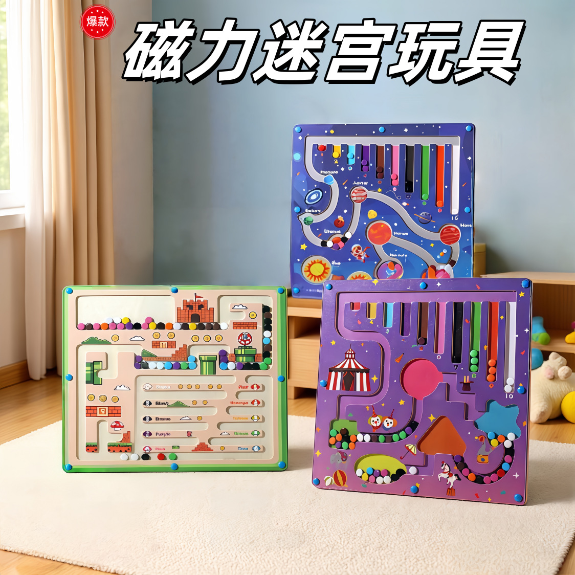 子供迷宮球デジタルキノコ屋色分類計数板早教運筆磁気迷宮走珠玩具