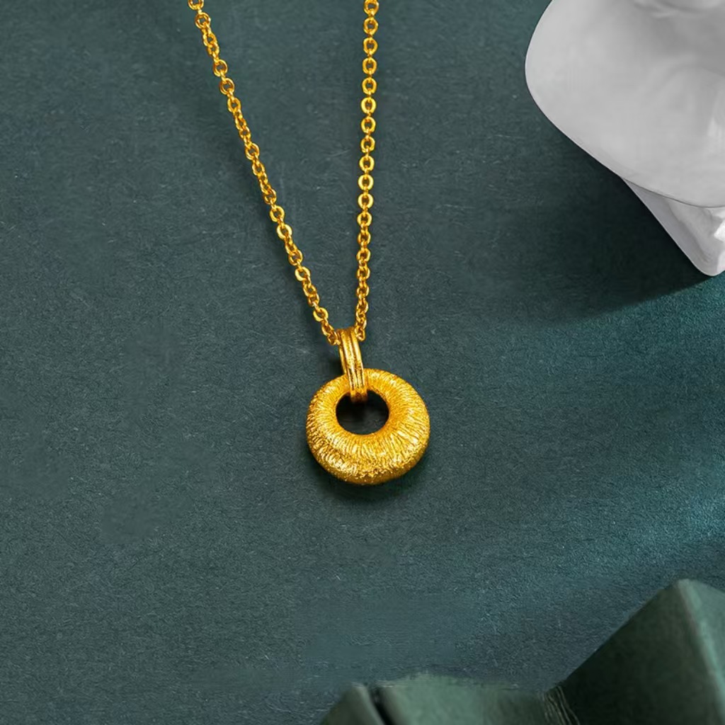サンドゴールドジュエリー中空トランスファービーズネックレスジュエリー女性のハイエンドブラッシュセーフティバックル小さなゴールドペンダントオールインワンチェーン