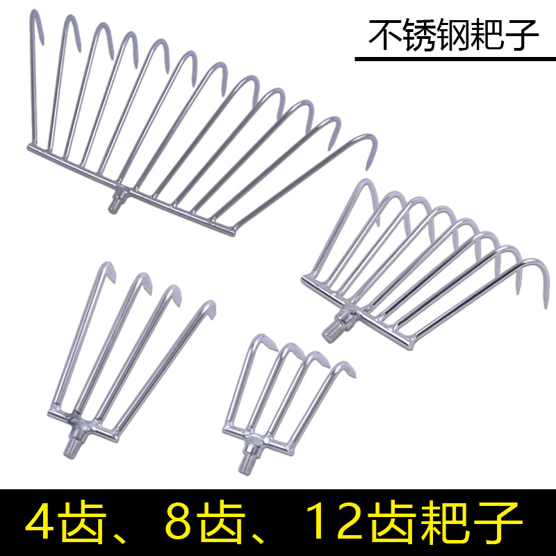 ステンレス製水草かき集め器、除草用大型かき集め器、12歯/8歯、葉っぱかき集め、魚捕り、除草用かき集め器、水草収穫ツール