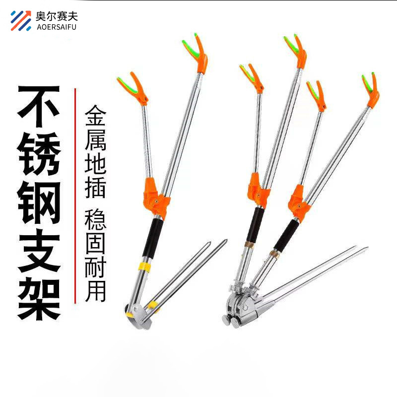不锈钢炮台支架鱼竿支架钓鱼地插台钓架杆竿架渔具手竿鱼杆支撑架