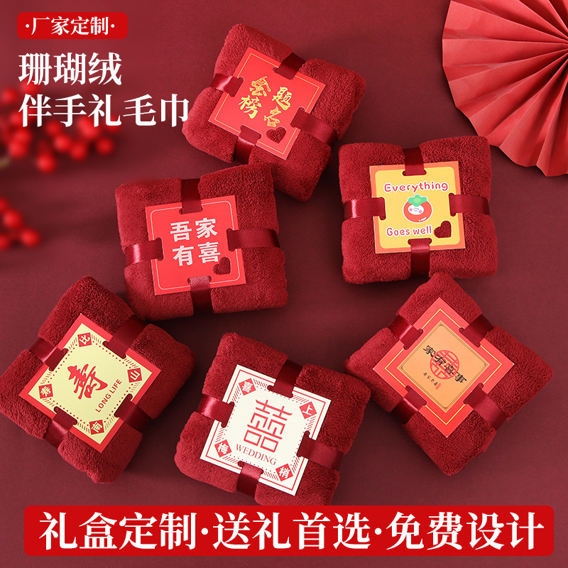 珊瑚绒加厚吸水方块毛巾洗脸批发婚庆礼品结婚伴手礼毛巾回礼巾
