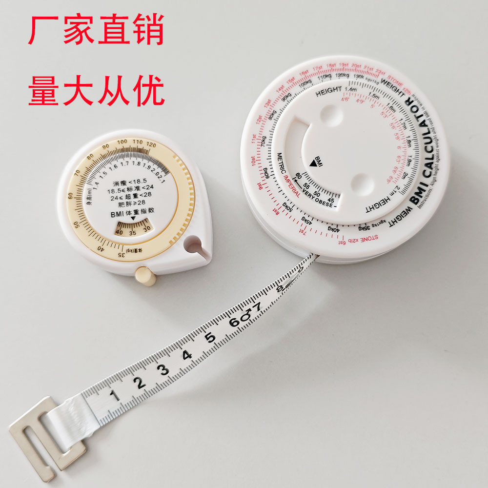 工場直送 丸型BMI巻尺 プラスチック製伸縮式健康巻尺 腰囲測定器 輸出入向け人気商品