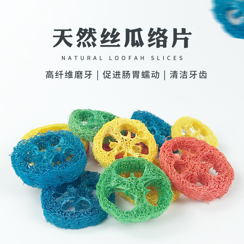 宠物磨牙天然丝瓜络彩色洁齿丝瓜片仓鼠龙猫磨牙玩具