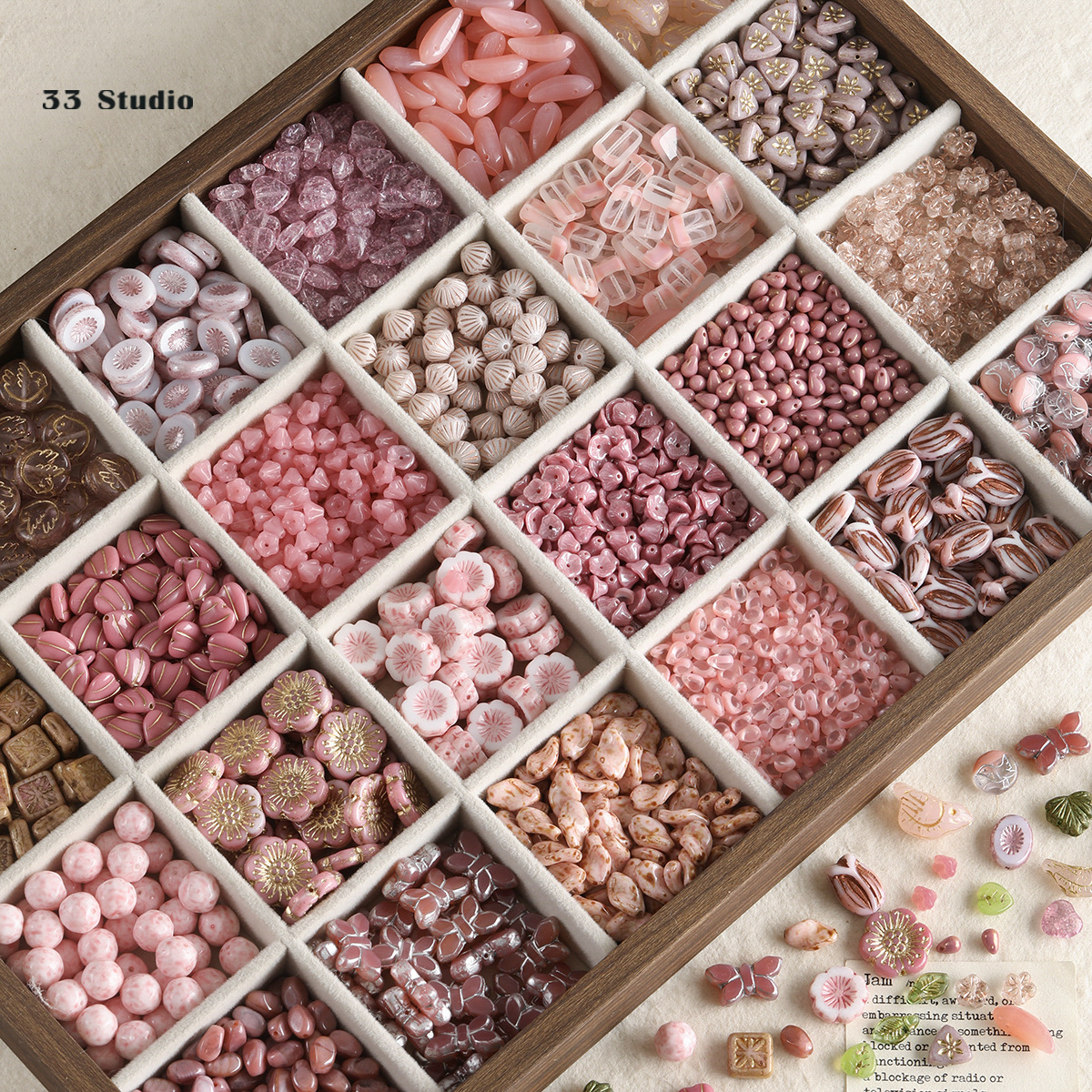 【莫黛花】粉色进口捷克琉璃散珠手链项链手机链串珠diy配件材料