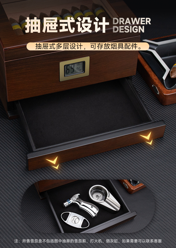 HANNICOOKシガー保湿ボックスシダーウッド多層引き出し式大容量家庭用シガーボックス工具セット
