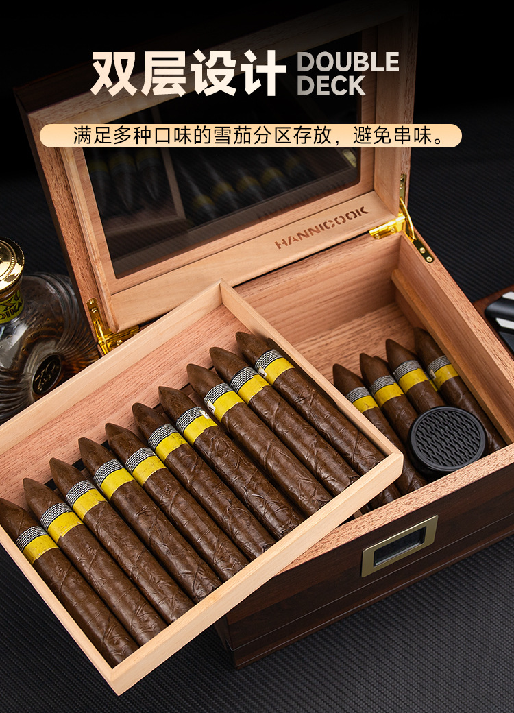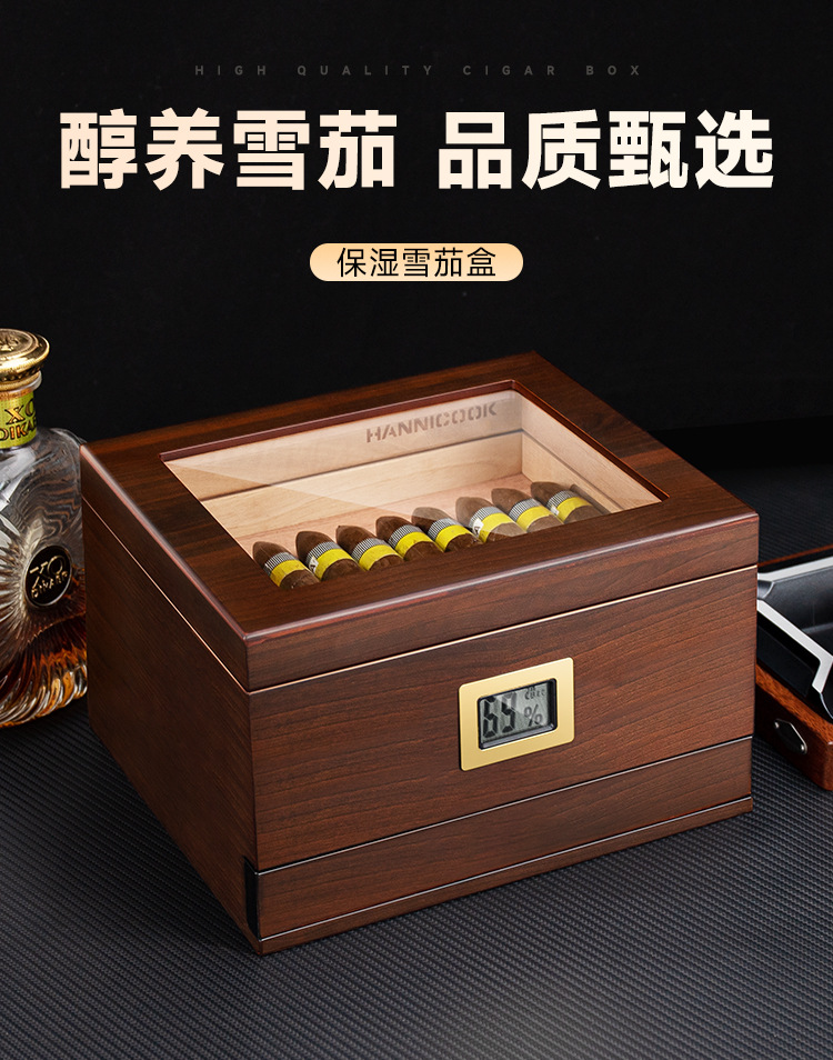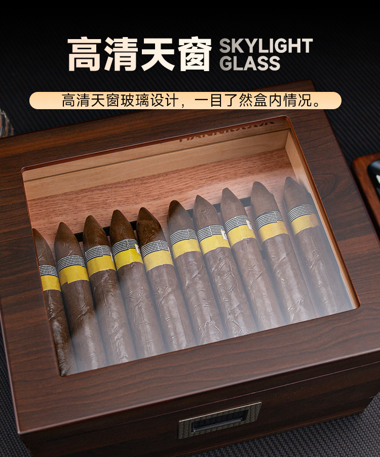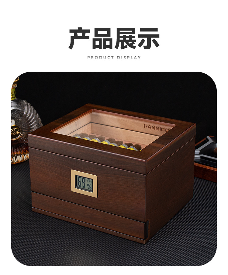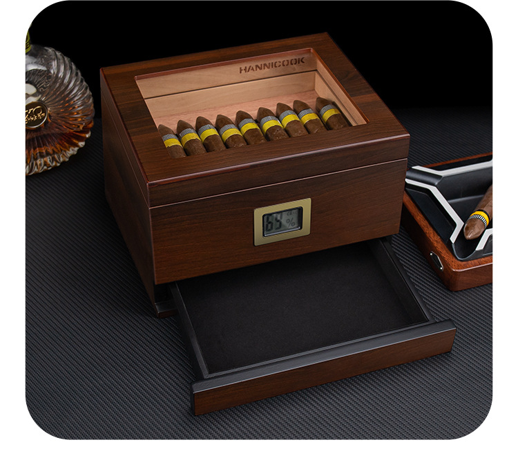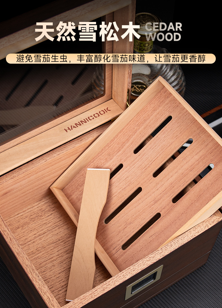 Hannicookシガー保湿ボックスハイエンドシダーウッドパースペクティブ天窓シガーボックス大容量引き出し付きシガーボックス