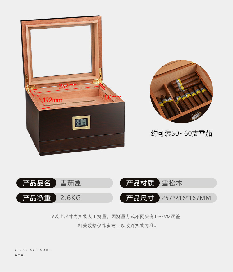 シガーボックス保湿ボックス家庭用シダーウッド保湿ボックス独立大容量シガーボックスCA-24DAA