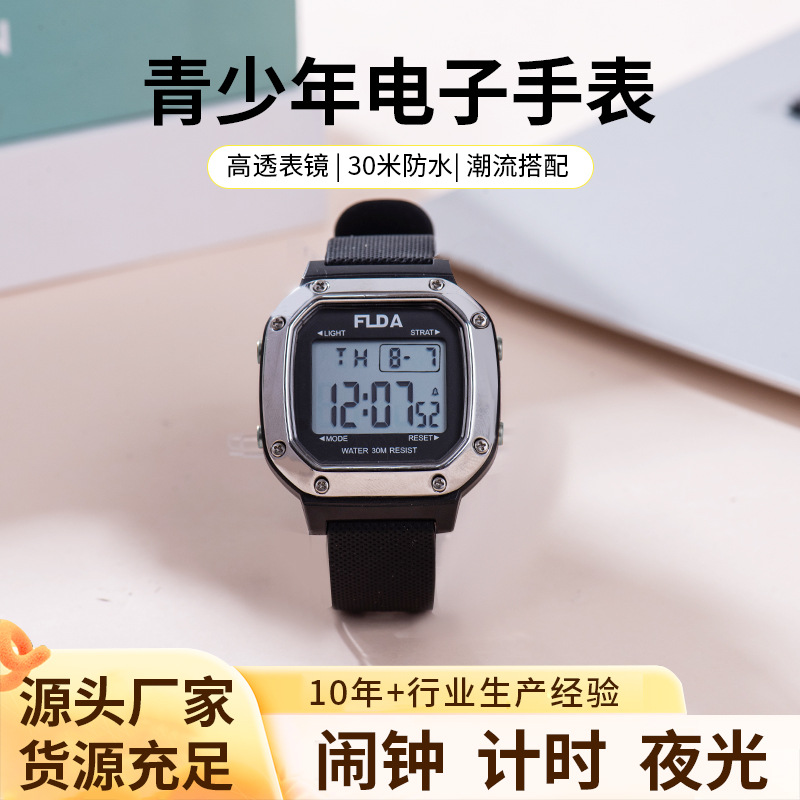时刻美小方块电子表防水夜光多功能运动手表学生党电子手表批发商