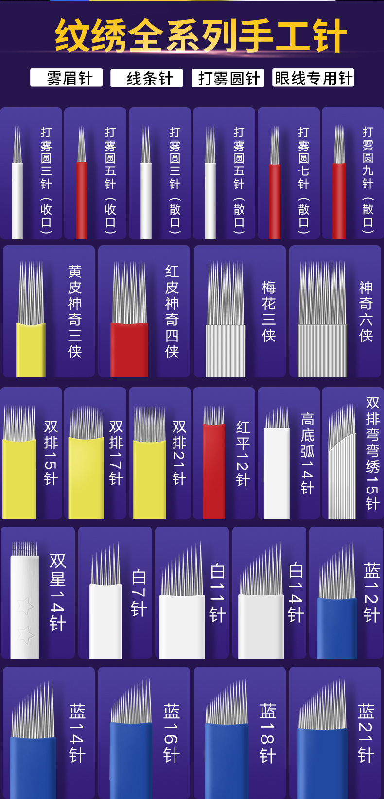 ゆる口丸三本針(かぶり),ゆる口丸五針(かぶり),丸三針クロージング(かぶり),5本針で丸く閉じる(かぶり),パープルレザー14針,パープルレザー18針,ブルーレザー13針(ライン),ブルーレザー14針(ライン),ブルーレザー16針(ライン),ブルーレザー18針(ライン),ブルーレザーU18針,0.18 ブラックレザーライン 12針,0.18 ブラックレザーライン 14針,0.18 ブラックレザーライン 16針,0.18 ブラックレザーライン 18針,0.18 ブラックレザー U 字型 18 ピン,黄金の神三針緩口,ゴールデンゴッド三針クロージング,黄金の神の五針クロージング,黄金の神五針緩口,1列曲線刺繍14針,2列カーブ刺繍15針,2列カーブ刺繍16針,2列カーブ刺繍 ホワイトレザー 15針,1列カーブ刺繍18針,曲線刺繍21針,2列カーブ刺繍 23針,DPM丸三散針,DPMラウンド3閉じ針,DPM丸型5本針,DPMラウンド5閉じ針,オールドスタイルビューティーコーヒークローズラウンド3本針,オールドスタイルのアメリカンコーヒー、丸くて5本の針,新しいMKラウンドスリーカフ,新型MKラウンド5ルーズマウス,新型MK 3P針(クローズド),Jian Zhixiu は 3 本の針を閉じます,Jianzhixiu ゆるい口ラウンド 5 針,妖精の刺繍留め丸三本針,妖精刺繍ゆる口丸五本針,PCL閉鎖丸3本針,PCLルーズマウス丸型5本針,第二世代無影針(高低弧28針3列),プレミアムクロージング3P針,PD12ピン(ライン),PD14ピン(ライン),PDアーク19ピン(ライン),ハイアークとローアークの 14 針 (線、枠線、かぶり),レッドスキンウォーターミスト 14本針(かぶり),ダブルスター14針(かぶり),ウォーターミスト2列15針(かぶり),ウォーターミスト2列17針(かぶり),イエロースキン・ファンタスティック・フォー(かぶり),梅の花三英雄 15針(かぶり),神の三針の世代(ピンジフォグドット),神の五針の世代(梅の花の霧の点),アイライナー用23本針(コンタクトライン),マジック・シックス(フォギング),ロングスタイルの神七針,ロングスタイル神9針