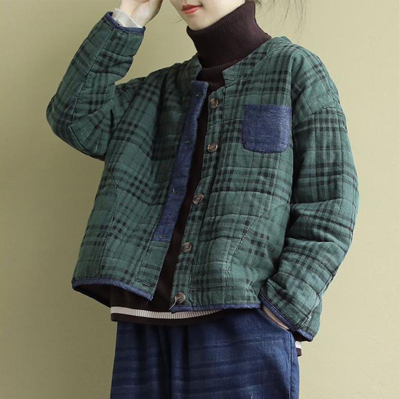 新型の大きいサイズの婦人服の綿の服のゆったりした綿入れの服のファッション的な立襟の厚い年齢の格子の復古の短いコート