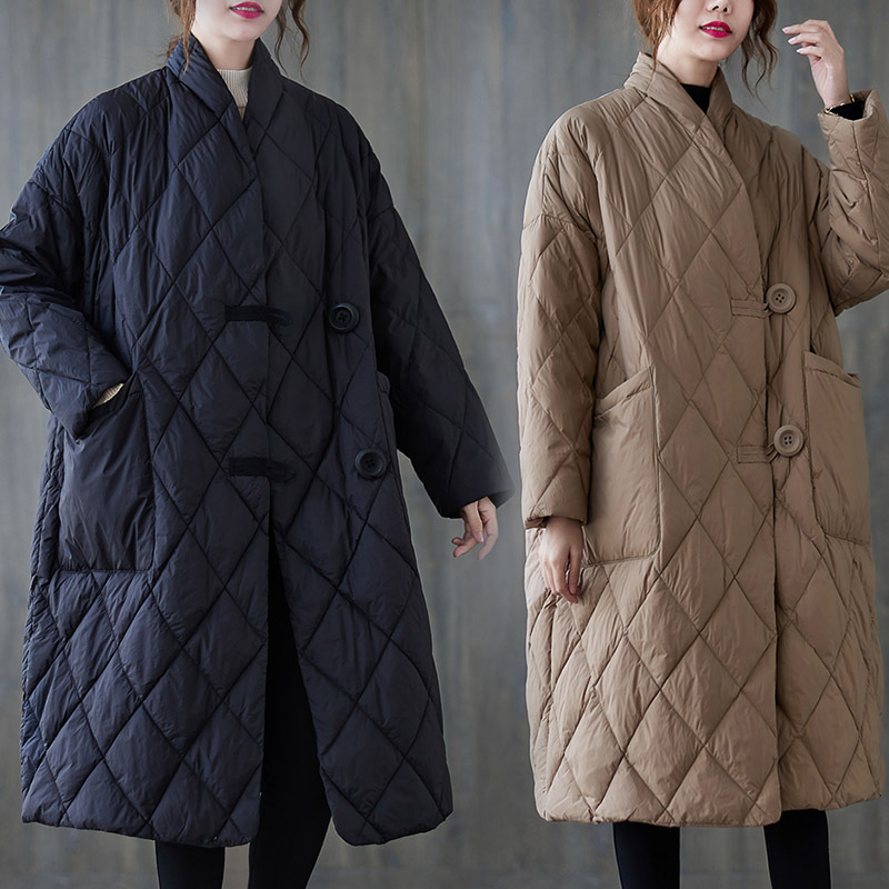 2025年冬新作 レディース綿入れジャケット ゆったりミドル丈 ひし形格子柄 無地婦人服コート 綿入れジャケット