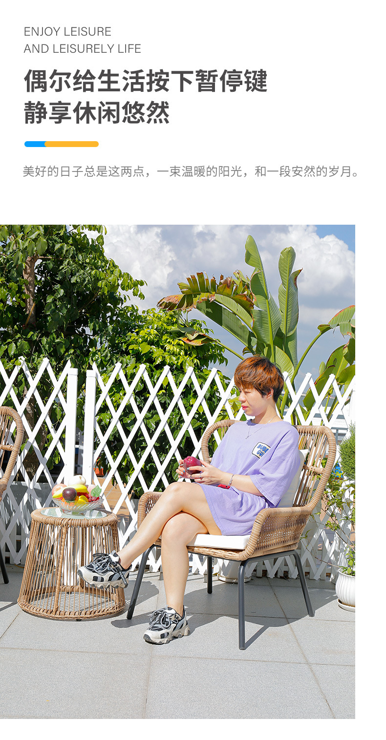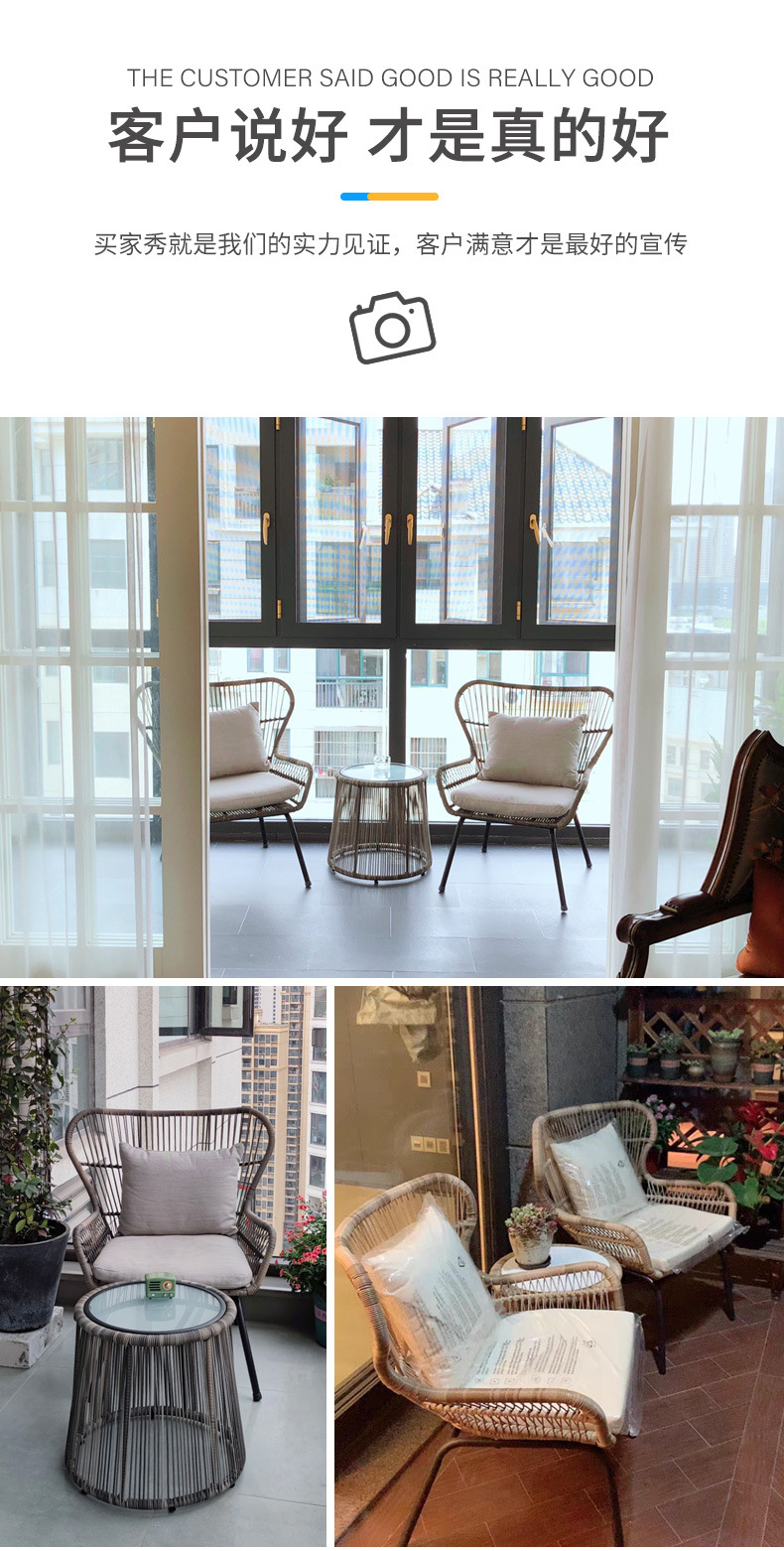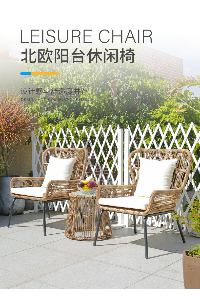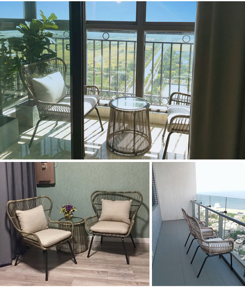 屋外インターネットセレブ籐椅子テーブル屋外テラスガーデンヴィラ中庭椅子クリエイティブバルコニー籐椅子組み合わせ